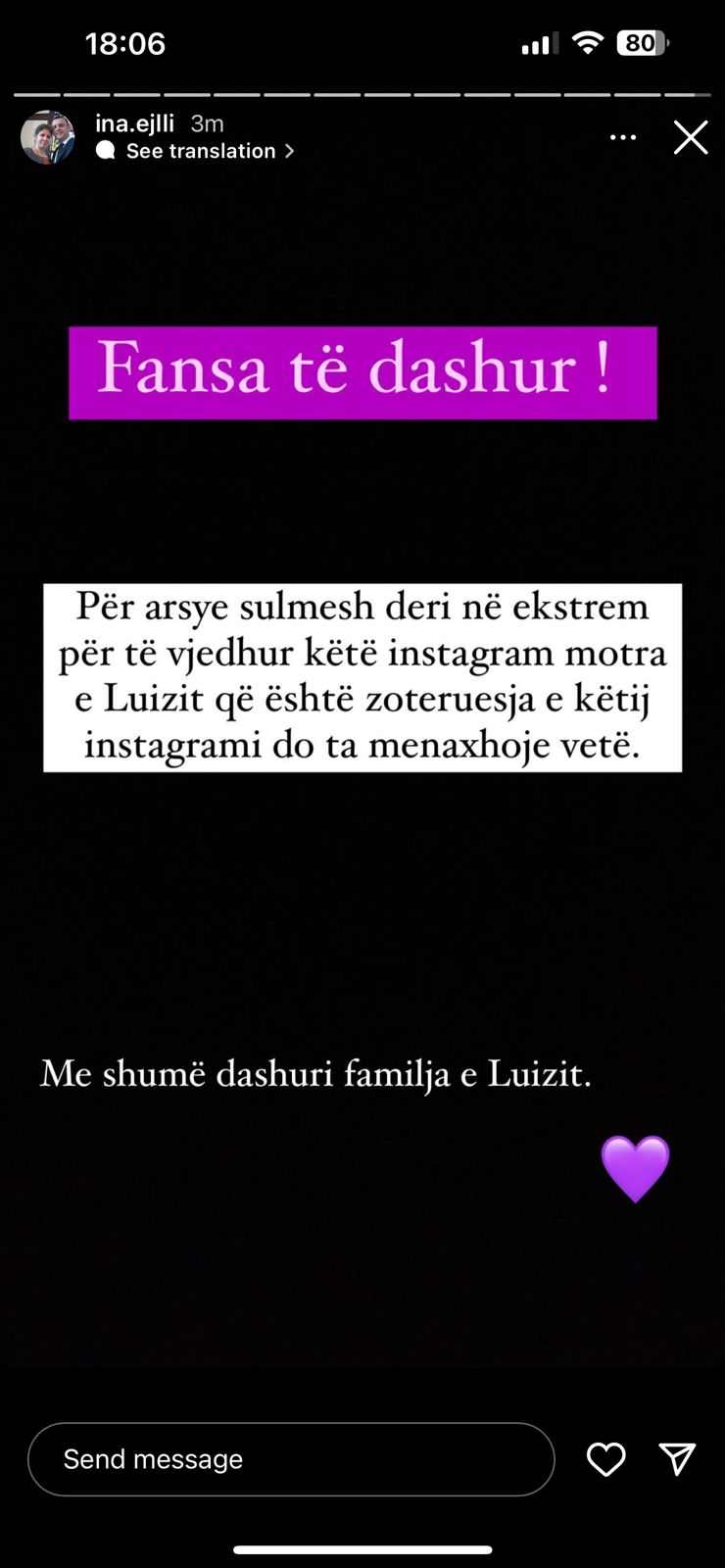 Fansa të dashur. Për arsye sulmesh deri në ekstrem, për të vjedhur këtë instagram motra e Luizit, që është zotëruesja e këtij Instagrami, do ta menaxhojë vetë. Me shumë dashuri, familja e Luizit.