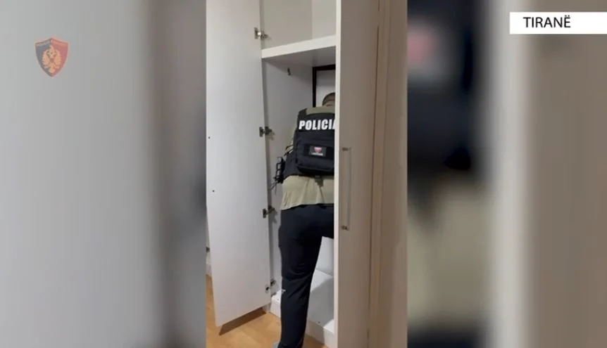 Gjatë kontrollit të banesës, shërbimet e Policisë zbuluan një ambient të fshehtë, të kthyer në laborator për prodhimin dhe falsifikimin e dokumenteve të ndryshme dhe pasaportave.
