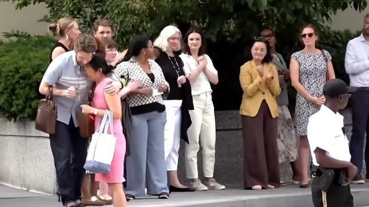 Qindra protestues, përfshirë ish-punonjës dhe mbështetës të tyre, mbanin pankarta kundër asaj që e quajnë një “spastrim politik” nga administrata Trump. Të larguarit u shoqëruan me duartrokitje dhe përqafime, në një atmosferë të mbushur me emocione dhe shqetësim për të ardhmen.