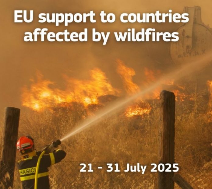 Për përballimin e situatës së zjarreve gjatë periudhës 21 dhe 31 korrik 2025, Bashkimi Evropian mobilizoi edhe në Shqipëri avionë zjarrfikës, helikopterë, si dhe mbështetje satelitore përmes sistemit “Copernicus”.