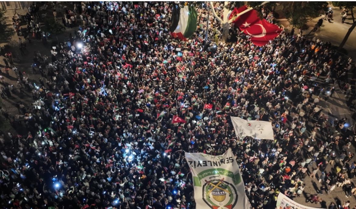 Konflikti në Lindjen e Mesme, mijëra njerëz protestojnë në Stamboll kundër sulmeve izraelite në Gaza
