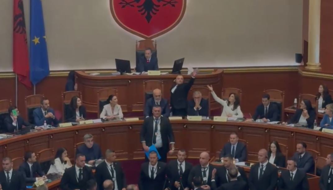 Më pas opozitarët nuk lejuan kryeministrin Rama të vijonte fjalën e tij nga foltorja, ku deputeti Klevis Balliu u shpreh se “Diella” nuk ka mandat.