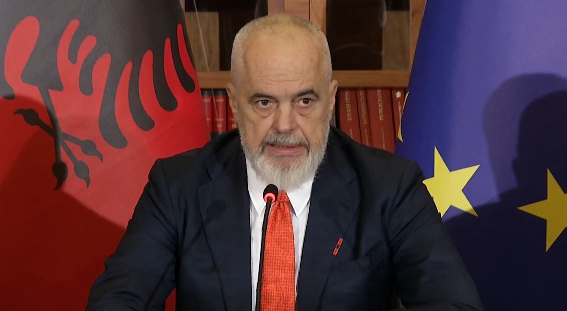 Kryeministri Edi Rama po mban një konferencë për shtyp nga Kryeministria me ministren e Punëve të Brendshme, Albana Koçiu dhe ministrin e Drejtësisë, Besfort Lamallari.