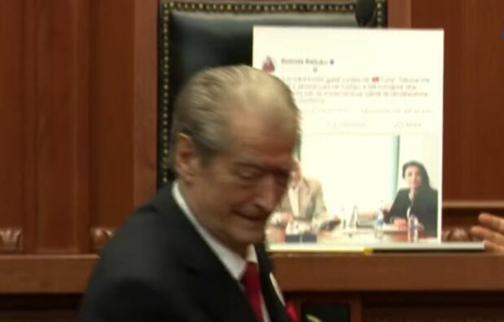 Kreu i PD Sali Berisha përpara se të niste fjalën e tij në Kuvend ka vendosur në tavolinën e kryeministrit Rama, një foto ku shihet zv kryeministrja Belinda Balluku në një takim me turqit para fitimit të tenderit për tunelin e Llogarasë, foto që është publikuar më parë nga Balluku në rrjetet sociale, por që më pas është fshirë.