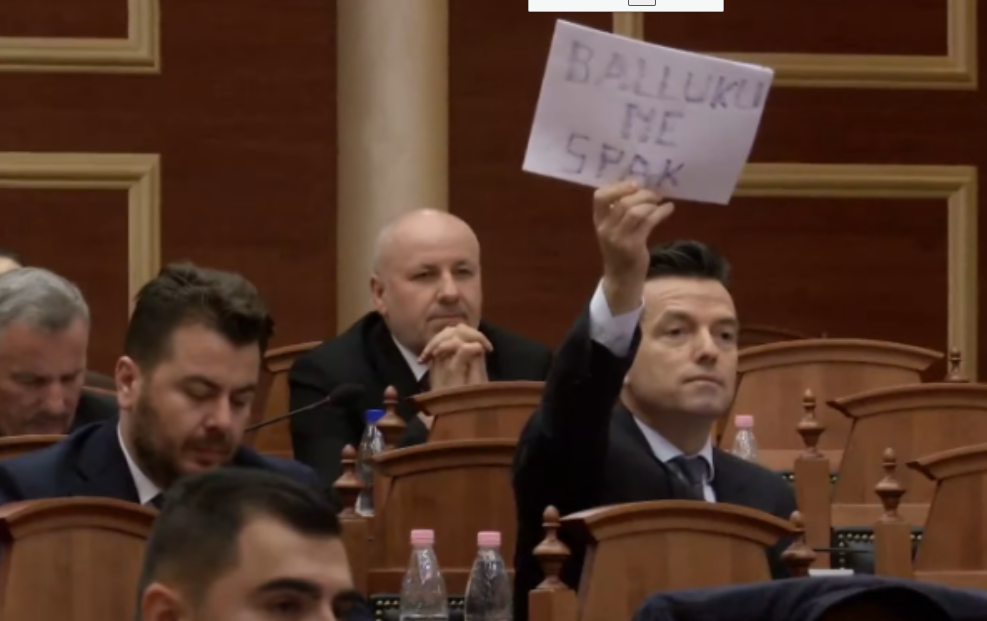 Kreu i Partisë Mundësia Agron Shehaj i ka drejtuar zv/kryeministres Belinda Balluku një pankartë gjatë fjalës së saj në foltoren e Parlamentit, ku ajo foli për herë të parë pas marrjes si e pandehur nga SPAK.