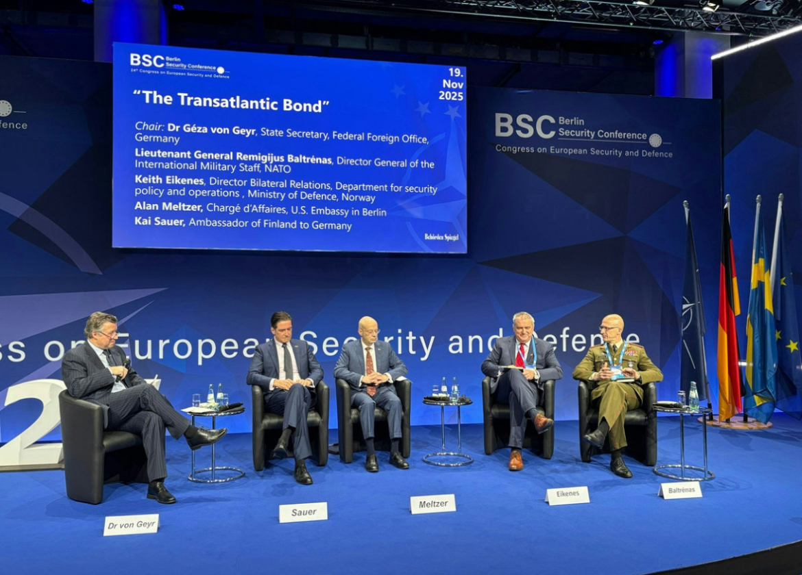 Drejtori i Përgjithshëm i Shtabit Ushtarak Ndërkombëtar (DGIMS), Gjeneral Lejtnant Remigijus Baltrënas mori pjesë në Konferencën e Sigurisë në Berlin 2025. Së bashku me Sekretarin e Shtetit të Ministrisë së Mbrojtjes të Norvegjisë, të Ngarkuarin me Punë në Ambasadën e SHBA-së në Berlin dhe Ambasadorin e Finlandës në Gjermani, DGIMS përfaqësoi NATO-n në debatin e nivelit të lartë “Lidhja Transatlantike”.