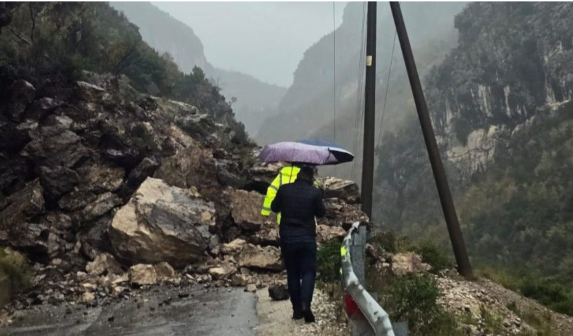 Rruga që të çon drejt digës së Bovillës, në Tiranë, është bllokuar për shkak të rënies së gurëve, si pasojë e reshjeve të dendura të shiut.