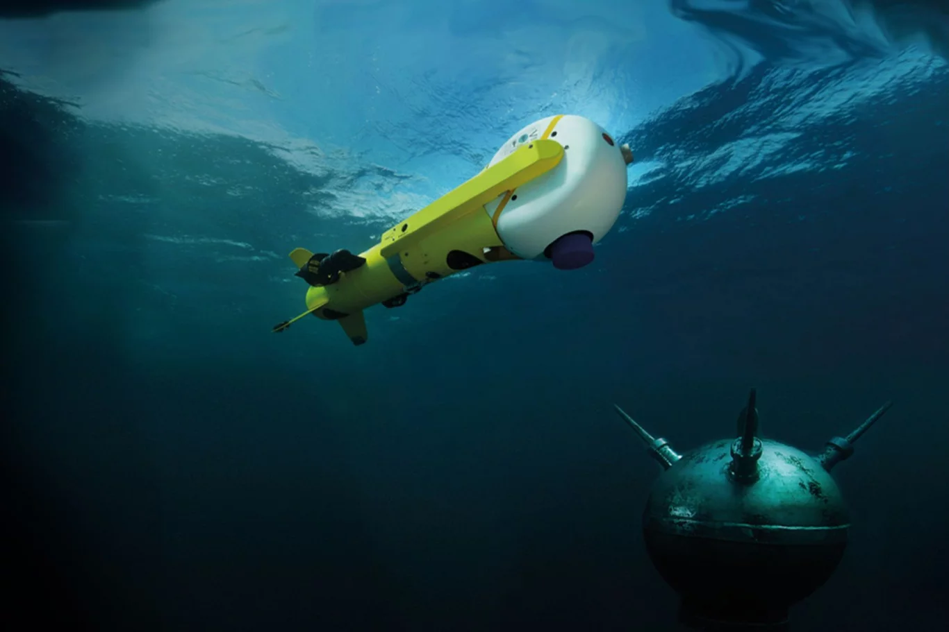 Shtytja sigurohet nga dy shtytës horizontalë dhe dy vertikalë, duke mundësuar manovrim të saktë, qëndrim pezull dhe stabilizim edhe në rryma të forta ose kushte baticash. Kjo aftësi është kritike në luftën kundër minave në botën reale, ku efektet hidrodinamike rreth objekteve të mëdha shpesh degradojnë kontrollin e automjetit gjatë afrimit përfundimtar. Sonari me dy frekuenca i integruar i dronit mbështet zbulimin e objektivave në distancë të gjatë dhe udhëzimin e saktë të terminalit, ndërsa një kamera video me ngjyra me funksionalitet automatik të ditës dhe natës dhe një dritë kërkimi të integruar ofrojnë konfirmim vizual para angazhimit. Qëndrueshmëria vlerësohet deri në një orë, me një shpejtësi maksimale prej pesë nyjesh, duke lejuar kohë të mjaftueshme për afrim dhe pozicionim të kujdesshëm pa kompromentuar ritmin e misionit.