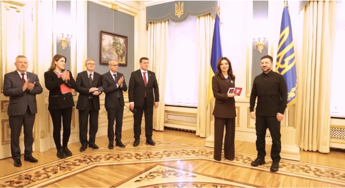 Presidenti Volodymyr Zelensky i dorëzoi sot Urdhrin e princeshës Olga, Klasi I, një nga dekoratat më të larta të shtetit ukrainas, ministres për Evropën dhe Punët e Jashtme, Elisa Spiropali.