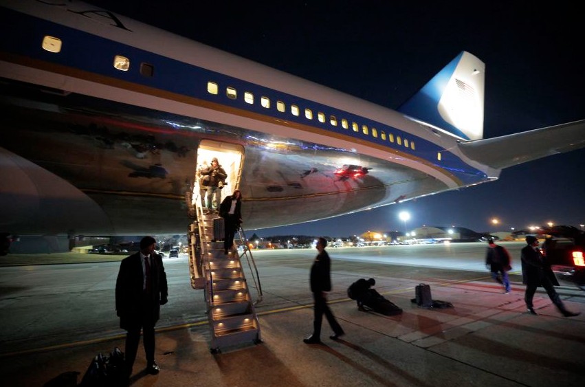 Avioni u ul në mënyrë të sigurt në Maryland pak pas orës 23:00 ET dhe Trump u ngjit në një aeroplan të ri të përdorur si Air Force One afërsisht një orë më vonë, gjatë rrugës për në Forumin Ekonomik Botëror.