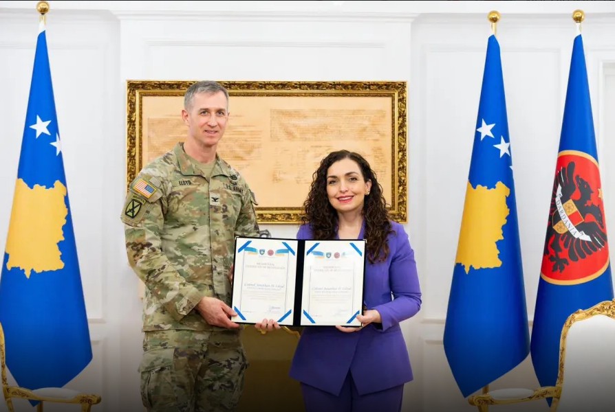 Presidentja e Republikës së Kosovës, Vjosa Osmani, priti dje në takim lamtumirës komandantin në largim të Komandës Rajonale Lindje të KFOR, kolonelin Jonathan Lloyd nga Garda Kombëtare e Louisianës, si dhe pasuesin e tij, kolonelin Sam Sargeant.