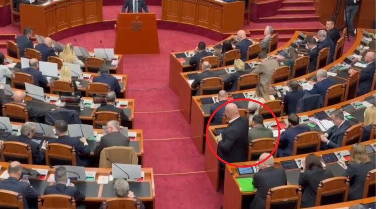 Ndërsa jashtë ambienteve të Parlamentit opozita po vijon njëkohësisht protestë, në tavolinat e deputetëve opozitarë janë vendosur foto të Ramës dhe Ballukut, me mbishkrimet; ‘Dorëheqje!’, ‘Qeveri Teknike’ apo dhe ‘Wanted’.