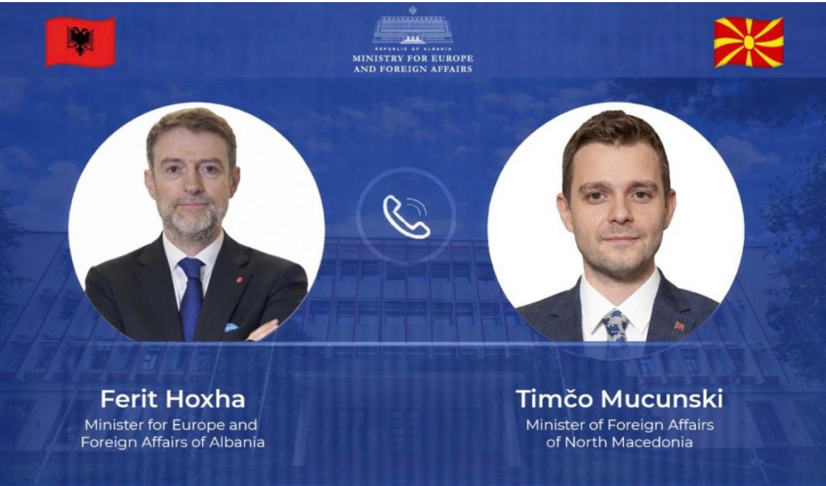 Ministri për Evropën dhe Punët e Jashtme, Ferit Hoxha, zhvilloi bisedë telefonike me ministrin e Jashtëm të Maqedonisë së Veriut, Timço Mucunski, gjatë së cilës u riafirmuan marrëdhëniet shumë të mira mes dy vendeve dhe rëndësia e bashkëpunimit rajonal.